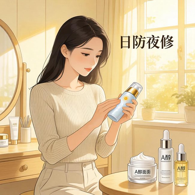 紫外线是肌肤老化的头号杀手,长期无防护日晒会导致胶原断裂、色斑沉积。选择广谱防晒霜(SPF30+/PA+++以上),阴天也需坚持使用。夜间护肤可加入0.1%-0.3%浓度A醇,其能激活成纤维细胞,刺激胶原蛋白合成,但需建立耐受(初期每周2-3次,搭配保湿霜缓冲刺激)。