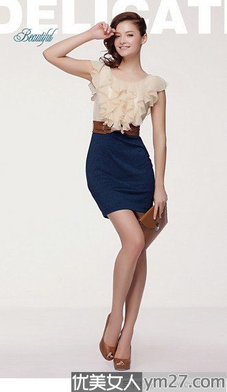 荷叶边收腰连衣裙