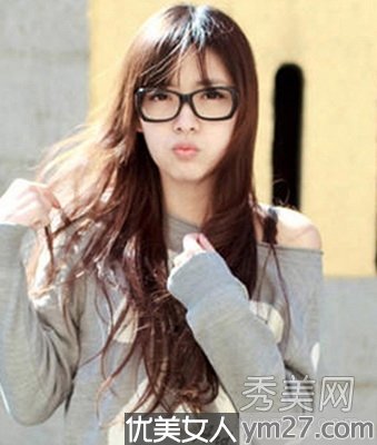 可爱的活力非主流女生直发,很可爱的学院女生发型,嘟嘟嘴、黑眼镜,知性俏皮。