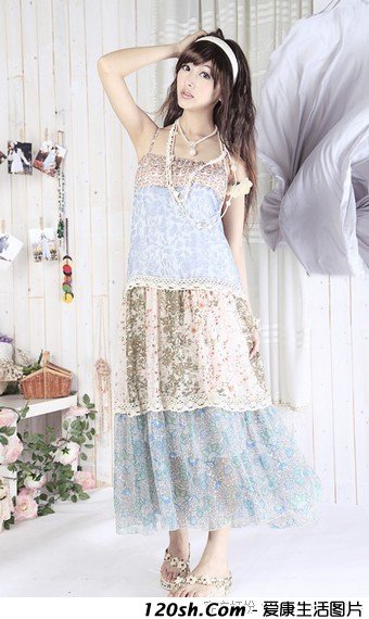 05 四种深浅不一的自然色系让森女气息更加浓厚,碎花的点缀像极了散落在草丛里的星星,闪着明亮的眼睛。白色蕾丝将各个部分拼接起来,甜蜜娇嫩而不突兀,女孩安静的坐在河边,恬静的姿态像一幅画。