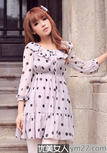 波点雪纺连衣裙是今年的大热,这条裙子的设计特别的显瘦修身,感觉经典又时尚。
