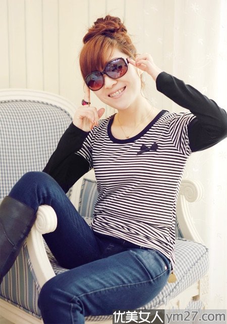 黑白条纹,永远的经典,时尚又百搭,将女性凹凸有致的线条尽显,呈现完美的身材比例,袖子处的撞色拼接和胸前的蝴蝶结装饰 给你带来焕然一新的惊喜感。
