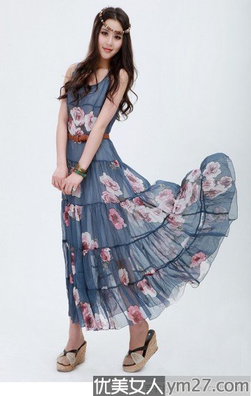 06 花色有着偏中国风的雅致,面料轻盈,下摆的四节拼接让宽度往下次第变宽,只需轻轻走动便能轻舞飞扬,营造脱俗飘逸感。修身剪裁更能凸显你的亭亭玉立。